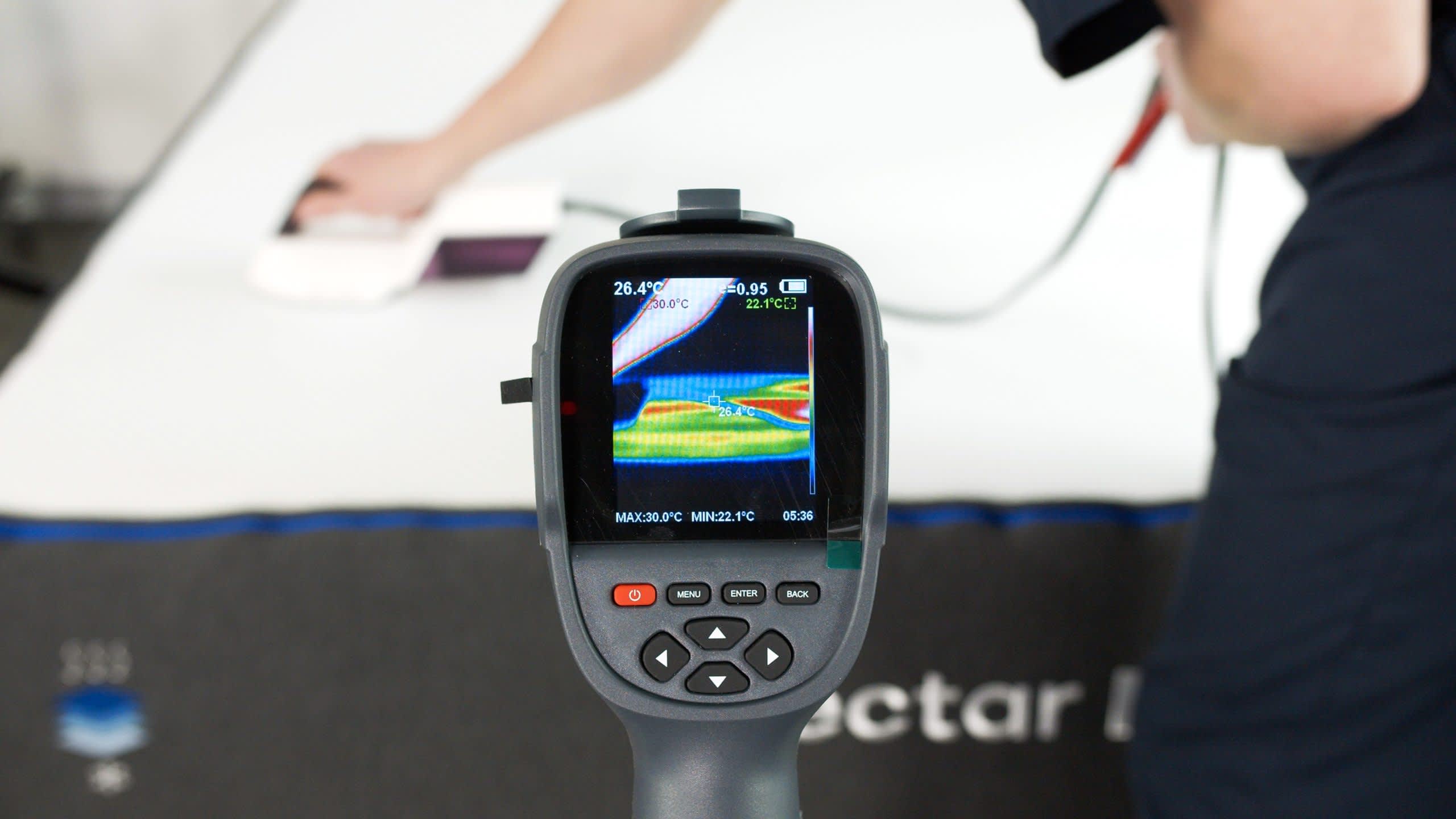 We conduct our body heat test by measuring how long the surface temperature of a mattress takes to dissipate after placing a heating element on top of the bed. After our tester got off the mattress, we found that the Nectar’s surface temperature dropped faster than the average foam mattress, which indicates that it retains less heat. If you currently sleep on foam without any problems, you’ll do fine on the Nectar.